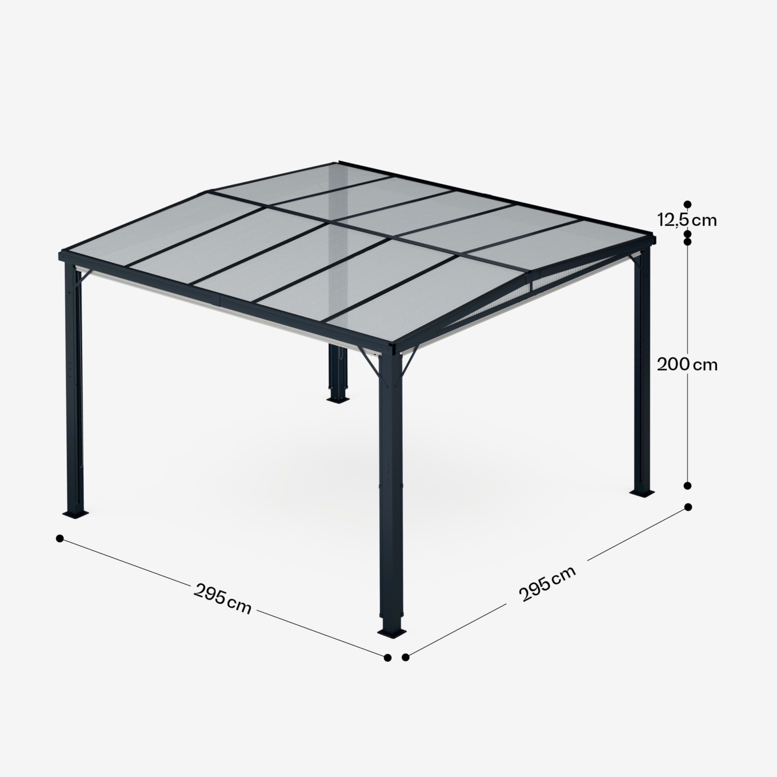 • Dimensiuni totale: 212,5 x 295 x 295 cm (Î x L x l)