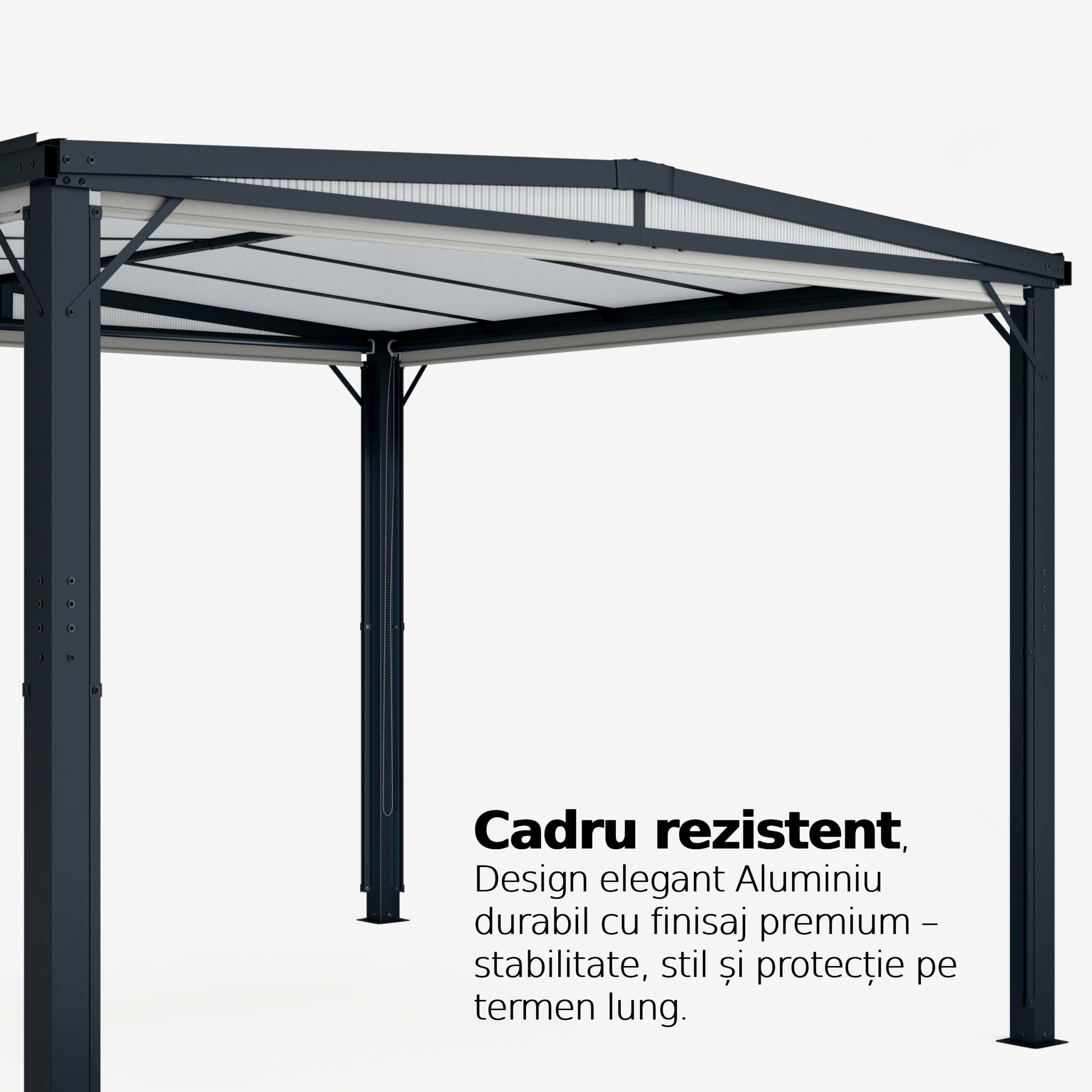 Cu un aspect modern și elegant, pergola se potrivește perfect în orice grădină sau pe orice terasă. Creează un loc de întâlnire plăcut pentru familie și prieteni, unde te poți relaxa în confort și stil.
