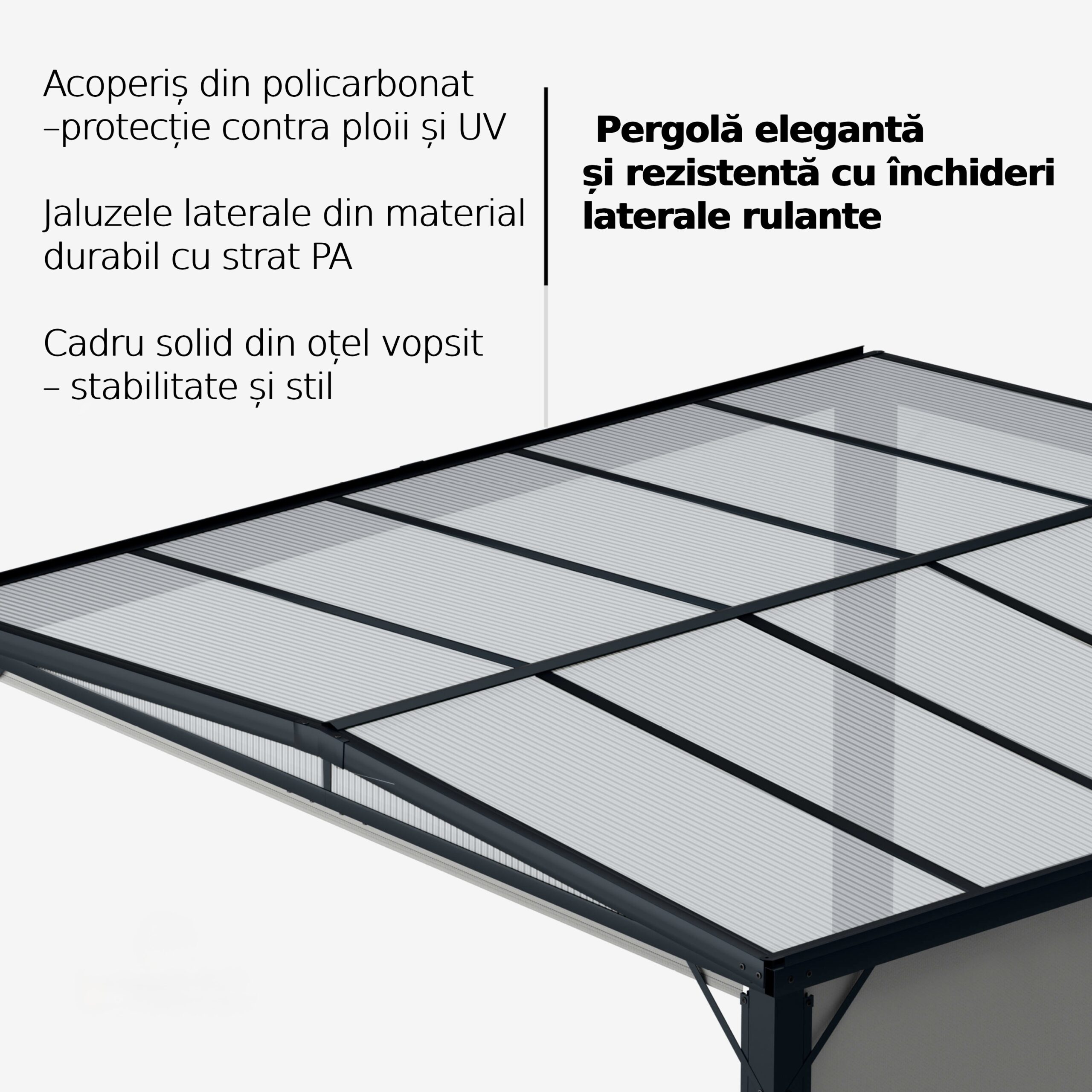 • Material acoperiș: policarbonat (PC) cu strat protector PU